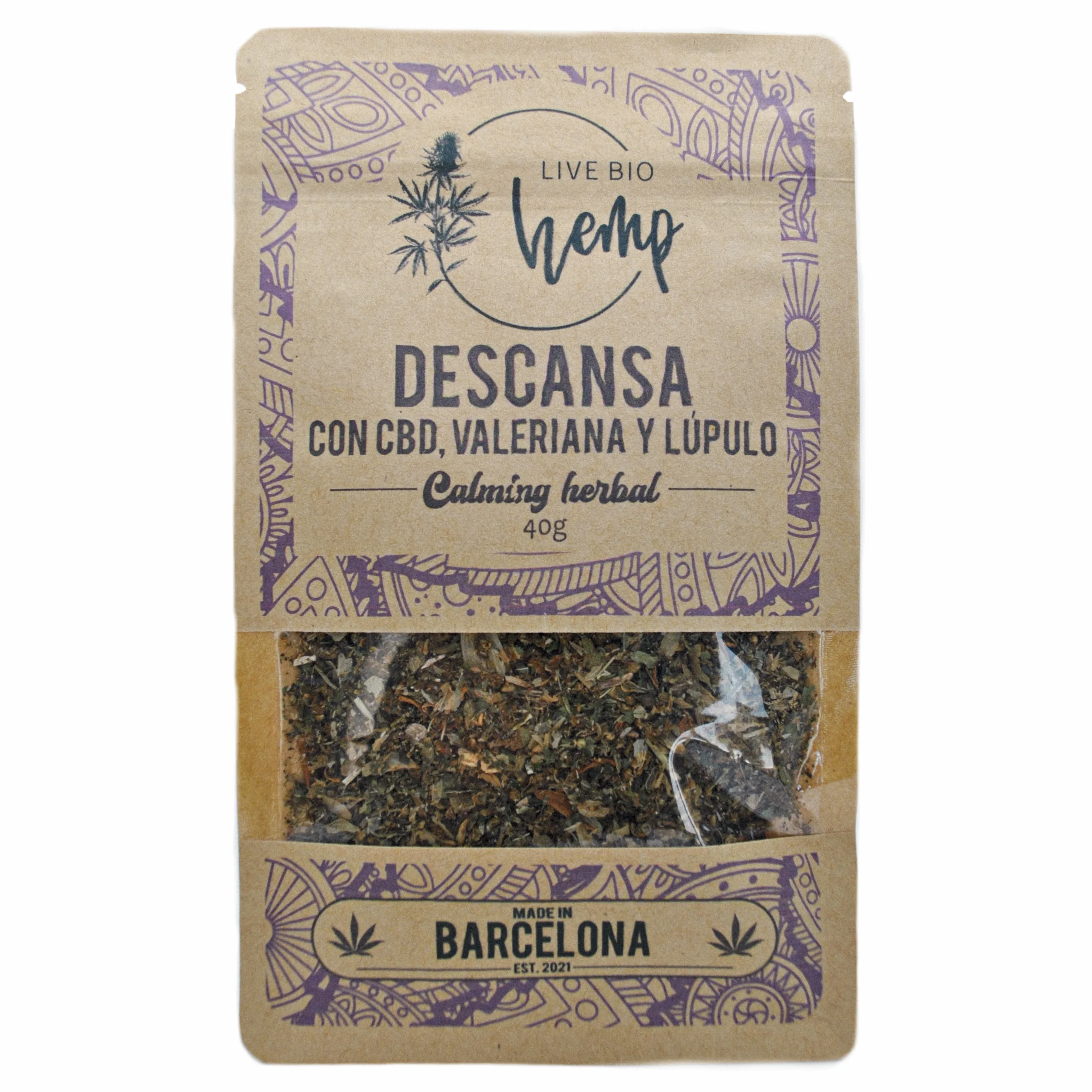 Mezcla de hierbas naturales con CBD (30%): una combinación cuidadosamente seleccionada de Valeriana, Lúpulo, Melisa, Menta y Espino blanco, diseñada para aportar una sensación de calma y bienestar.
